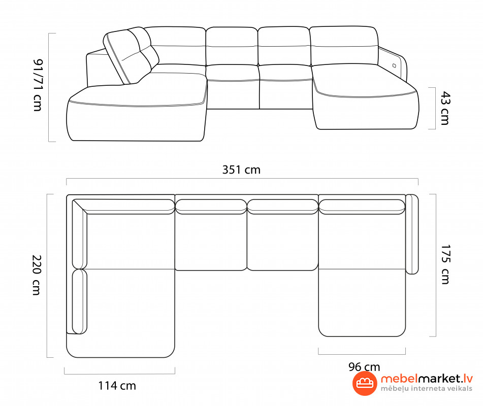 Stūra dīvānam ir elektrisks sēdekļa pagarināšanas mehānisms, kas ļauj viegli palielināt sēdekļa dziļumu un pielāgot to jūsu vajadzībām. Turklāt modelim ir guļamvietas funkcija ar zonu 120 x 290 cm, lai jūs varētu to viegli pārvērst par ērtu vietu, kur atpūsties naktī.