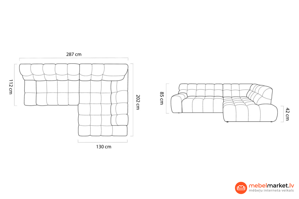 - Pufa platums: 130 cm
