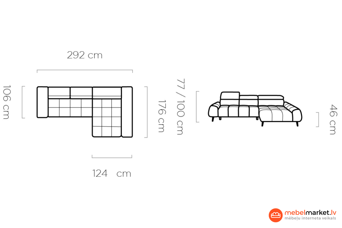 Stūra dīvāns ar izvelkamu sēdekli MAVEL S