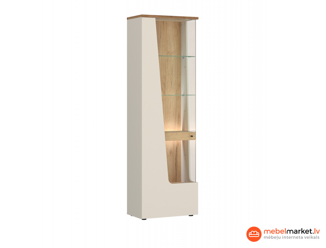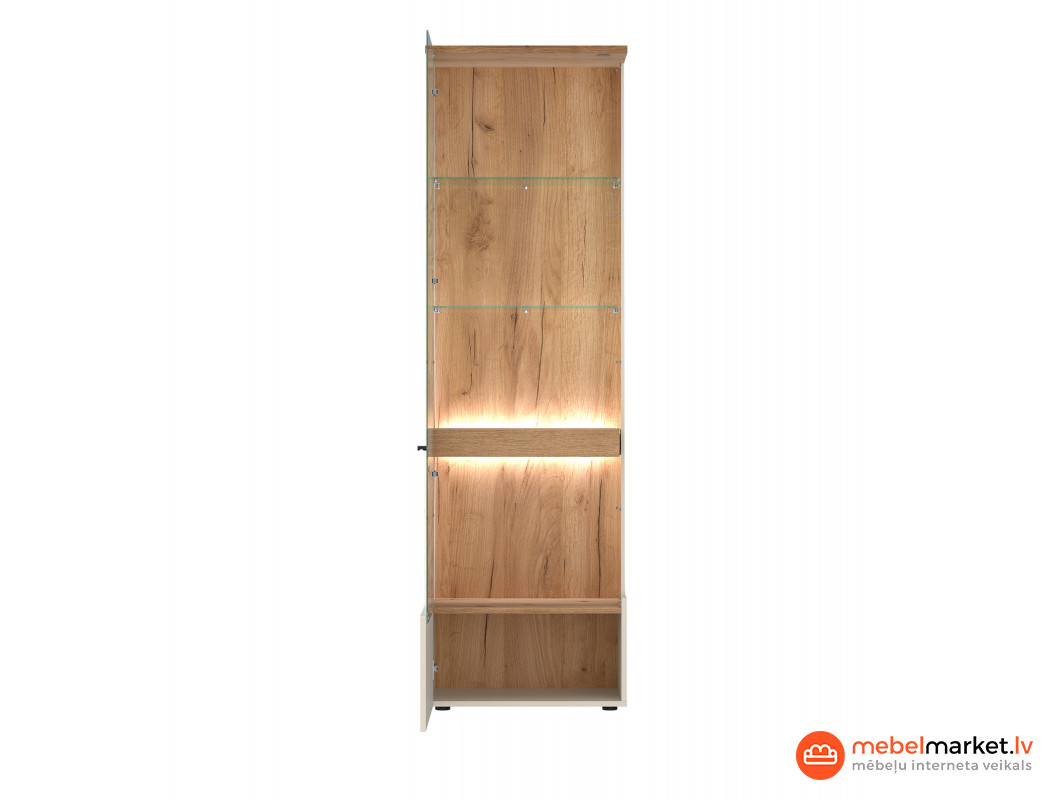 Vitrīnas iekšpusē slēpjas praktiski risinājumi, tostarp trīs caurspīdīga stikla plaukti, kas nodrošina ideālu vietu jūsu iecienītākajiem piederumiem. Slīpā kreisā priekšpuse, kas izgatavota no novatoriska materiāla, ir aprīkota ar klusu aizvēršanu, kas nozīmē, ka Vietnes izmantošana ir ne tikai patīkama, bet arī klusa. Turklāt papildu LED klipa apgaismojums ļauj pielāgot gaismas intensitāti pēc jūsu vēlmēm, radot mājīgu atmosfēru telpā.