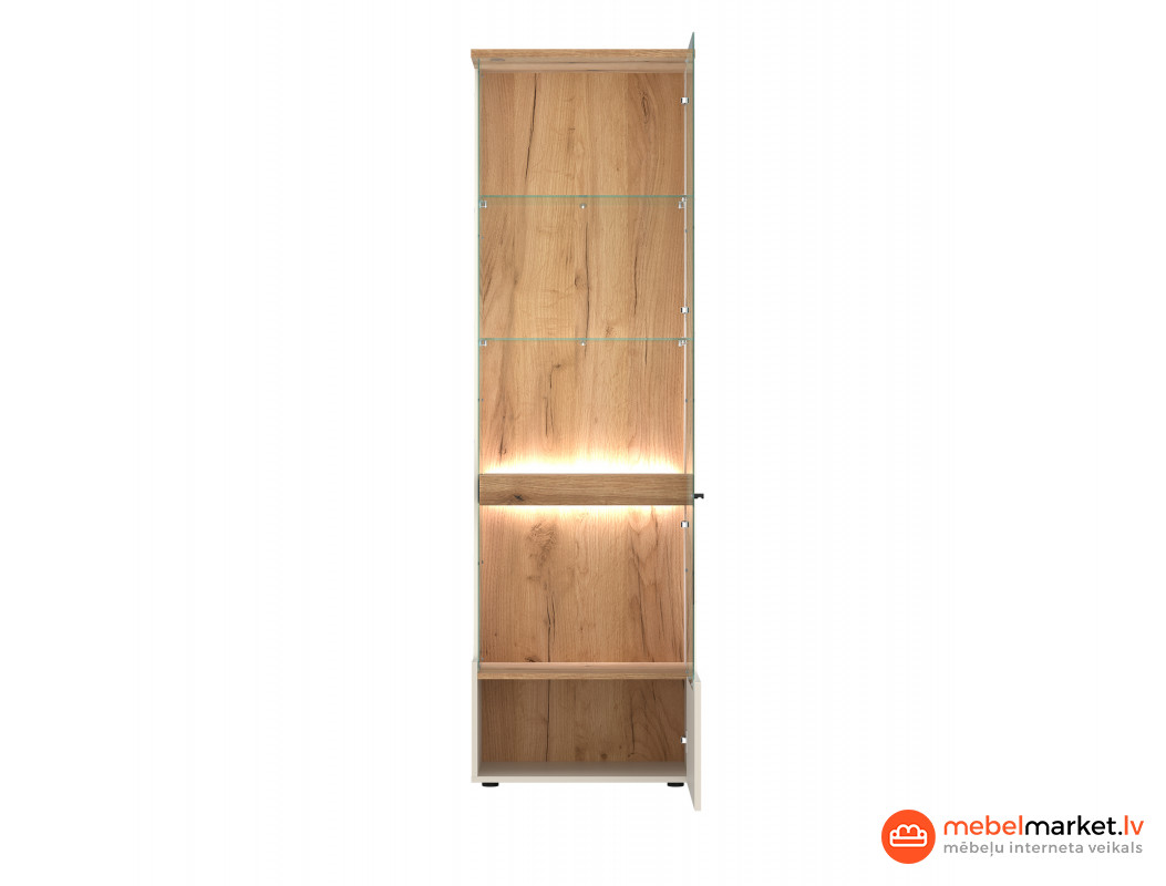 Cut out ctuv01r vietne ir izstrādāta, ņemot vērā lietošanas komfortu. Durvis, kas atveras labajā pusē, ir aprīkotas ar klusu aizvēršanas mehānismu, kas padara mēbeļu izmantošanu ārkārtīgi ērtu pat klusās telpās. Iekšpusē plašie stikla plaukti, kas izgatavoti no Caurspīdīga stikla, ir lieliski piemēroti, lai parādītu savus iecienītākos rotājumus, grāmatas vai stiklu, un fasādes stiklojums izceļ vitrīnas eleganto raksturu.