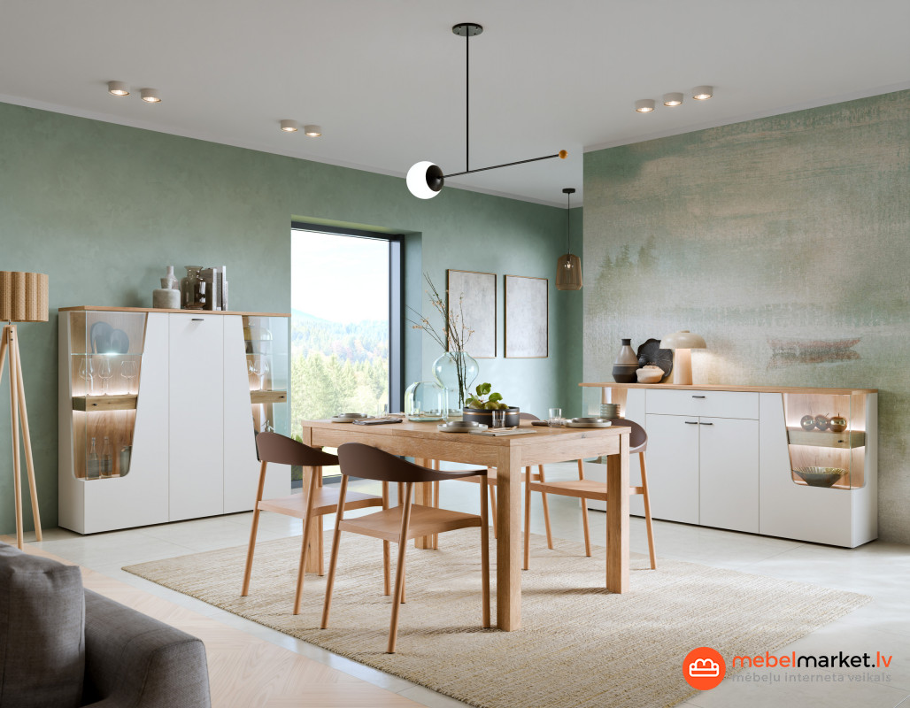 Cut OUT ctuv03 vitrīna ir unikāla mēbele, kas piesaista uzmanību ne tikai ar savu estētiku, bet arī ar pārdomātu dizainu. To raksturo plašs korpuss un plāns stiklojums sānos, kas rada viegluma un mūsdienīguma sajūtu. Coast siltā ozola nokrāsa apvienojumā ar elegantu kašmira krāsu piešķir interjeram mājīgu atmosfēru, lieliski apvienojot funkcionalitāti ar estētiku. Tā ir mēbele, kas darbosies gan plašā ēdamistabā, gan intīmā viesistabā vai āra viesistabā.