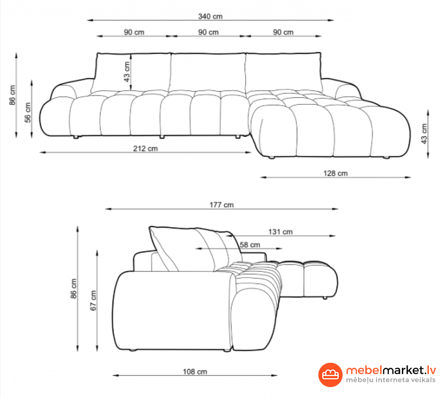 Pateicoties iespaidīgajam izmēram, dīvāns var viegli uzņemt visu ģimeni un viesus, vienlaikus saglabājot elegantu izskatu.