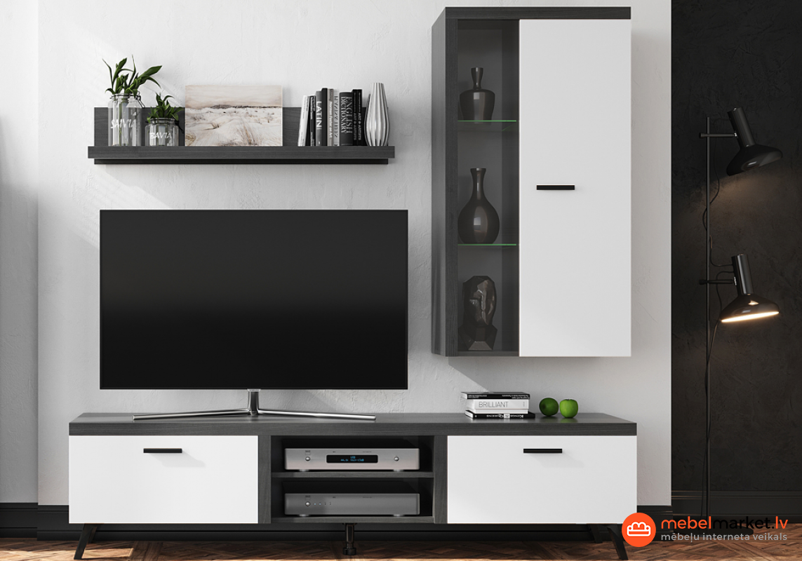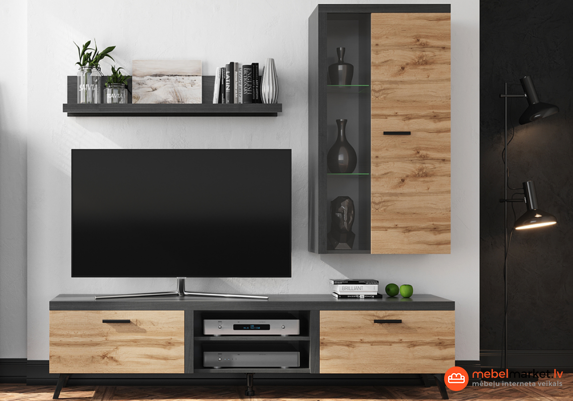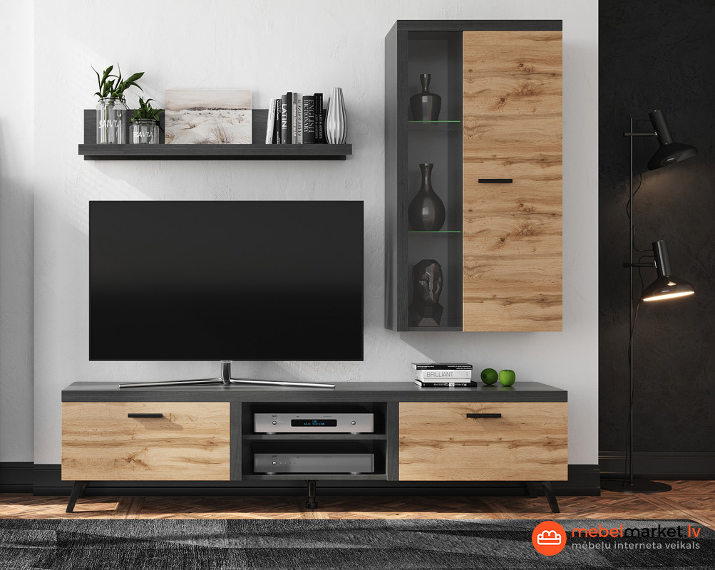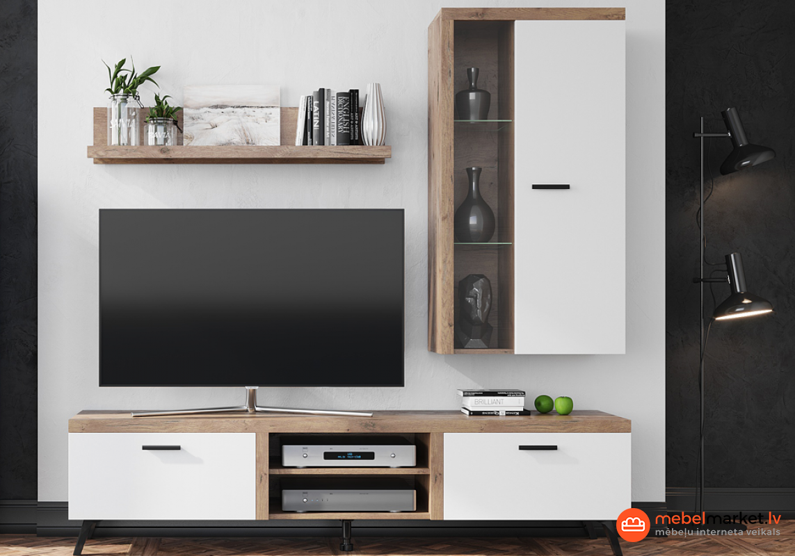 - mēbeles var iegādāties tikai komplektā - standarta aprīkojumā vitrīna ir aprīkota ar laminētu skaidu plātņu piekaramo plauktu, pēc pieprasījuma-par papildus samaksu 20 Eur - stikla plaukti ar LED apgaismojumu - malas aizsargā ABS mala - jaunas mēbeles; Garantija 2 gadi; iepakots iepakojumā; pašapkalpošanās montāžai (montāžas instrukcija un visi Montāžas elementi ir iekļauti)
