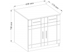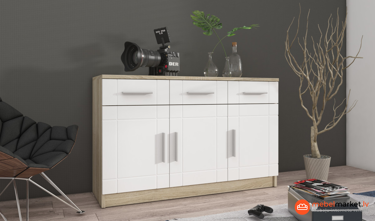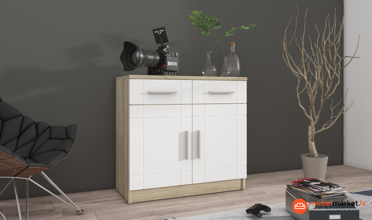 Komplekts ir pieejams šādās krāsās:Sonomas ozols,Sonoma ozols + grafīts,Sonoma ozols + balts.Izpilde:melamīna pārklātas malas,Korpuss: laminēta plāksne / Fasādes: 16 mm biezs MDF.rokturi ir izgatavoti no augstas kvalitātes plastmasas,