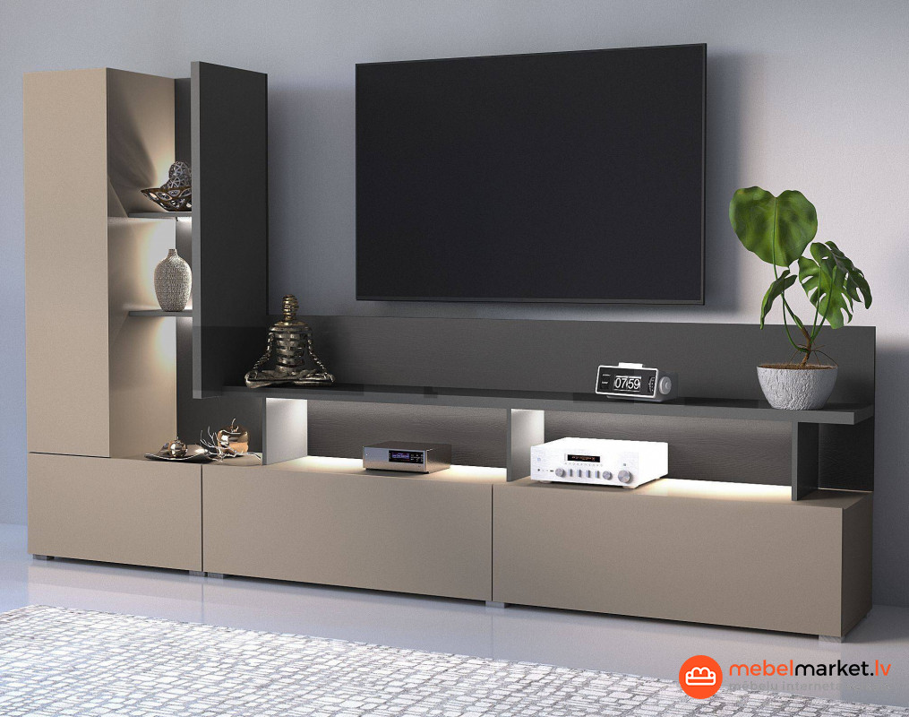 Tās dizains, kas apvieno matēta antracīta krāsas laminētus paneļus, rada elegances un funkcionalitātes atmosfēru.