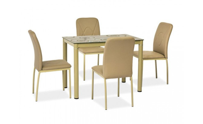 Galds DAMAR ir neliels mūsdienīgs galds, kas paredzēts dzīvokļiem, kur mēs vēlamies izveidot nelielu stūri, kur ērti sēdēt kopā ar ģimenes locekļiem, lai paēstu kopā. Galdam ir cieta metāla pamatne, krāsota tumši bēšā krāsā. Augšdaļa ir izgatavota no izturīga un droša rūdīta stikla tādā pašā krāsā. Galda virsma ir dekorēta ar drosmīgu rakstu, kas uzlabo šīs mēbeles skaistumu. Pateicoties stikla izmantošanai, darba virsmu ir ļoti viegli uzturēt tīru.