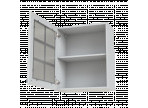 Piekārts skapis ar stikla priekšpusi ar kalnu stiprinājumiem, funkcionāls un dekoratīvs. Tā priekšpuse ir izgatavota no MDF plātnes (19 mm bieza), bet korpuss - no baltas mēbeļu plātnes (16 mm biezs).