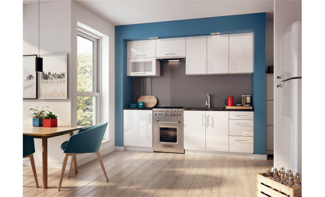 Luna White skapji ir daudzpusīgas baltas virtuves mēbeles, kas vienmēr būs uzticama izvēle - visas pārējās apdares detaļas varat sakārtot pēc vēlēšanās. Mūžīgas, spīdīgi baltas skapju fasādes rotās un optiski palielinās interjeru; Lieliski piemērots nelielai virtuvei vai virtuvītei.
