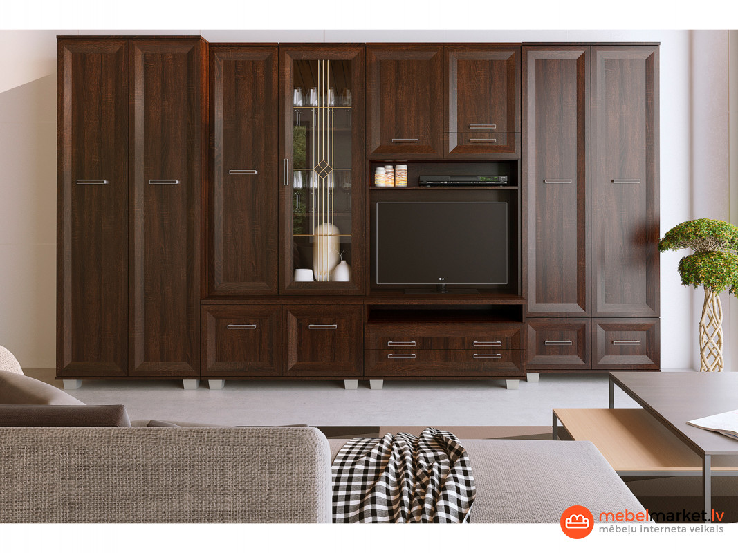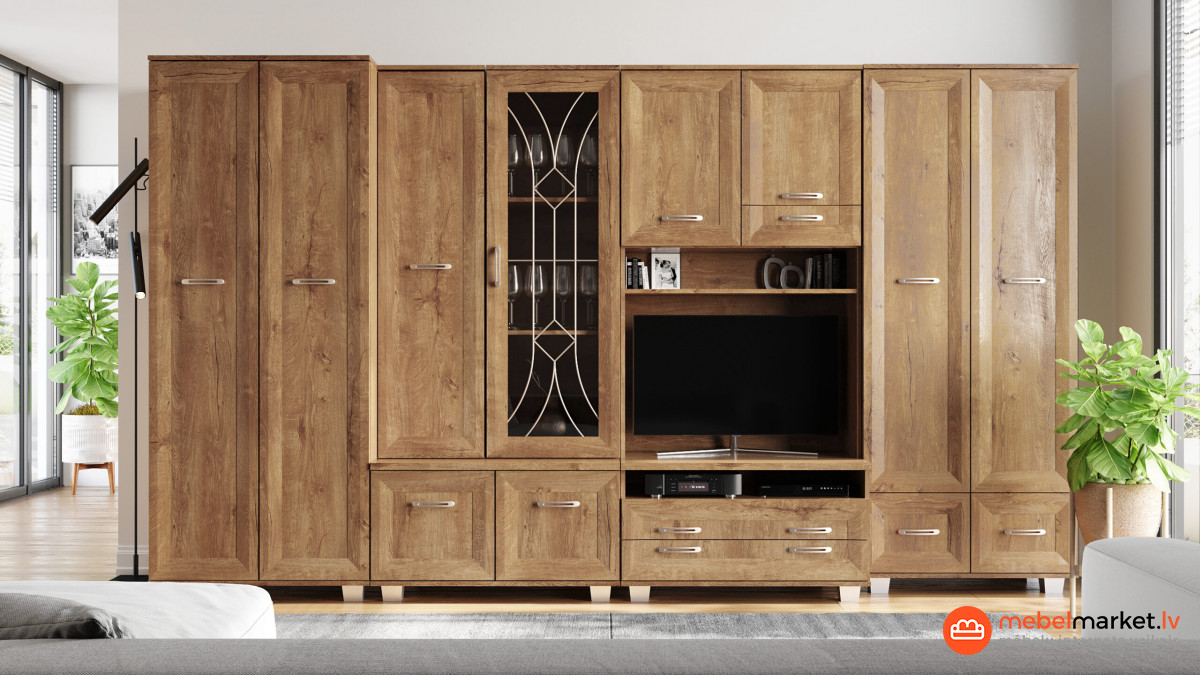 Секция предназначена для любителей классического дизайна и функциональности. Секция прекрасно впишется в любой интерьер и создаст неповторимую атмосферу в вашем доме. Внутреннее наполнение секции и стеклянная витрина обеспечат удобное размещение книг, декора и других предметов.