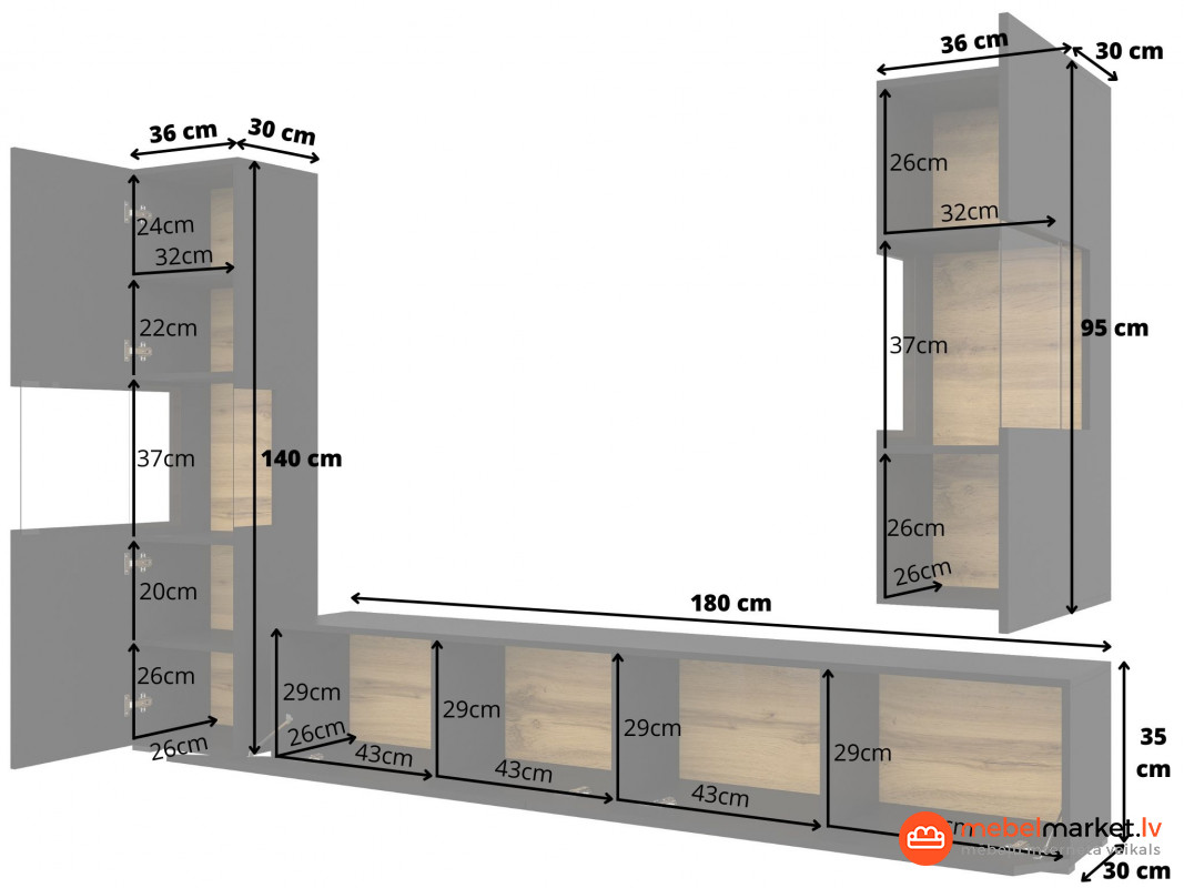 Каждую стенку Ava Wall Unit можно разместить на полу или повесить на стену с помощью входящих в комплект металлических креплений, что упрощает сборку и позволяет создать уникальную композицию. Возможность самостоятельной сборки позволяет полностью контролировать окончательный вид и расположение отдельных элементов.