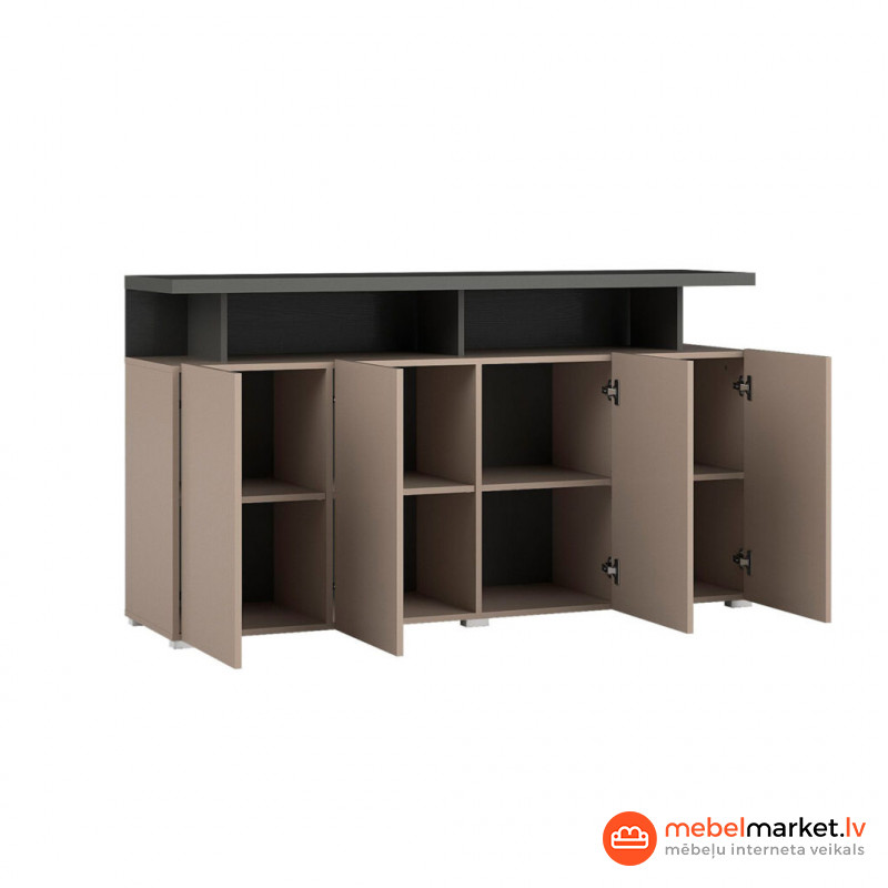Элегантный четырёхдверный комод Serio от Helvetia сочетает в себе современный стиль и функциональность. Изготовленный из ламинированной ДСП с матовой отделкой цвета «антрацит Конго», он гармонично впишется в любой интерьер. Идеально подходит для хранения и организации пространства.