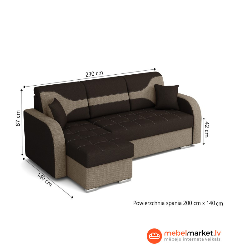 Спальное место: 200 x 140см.